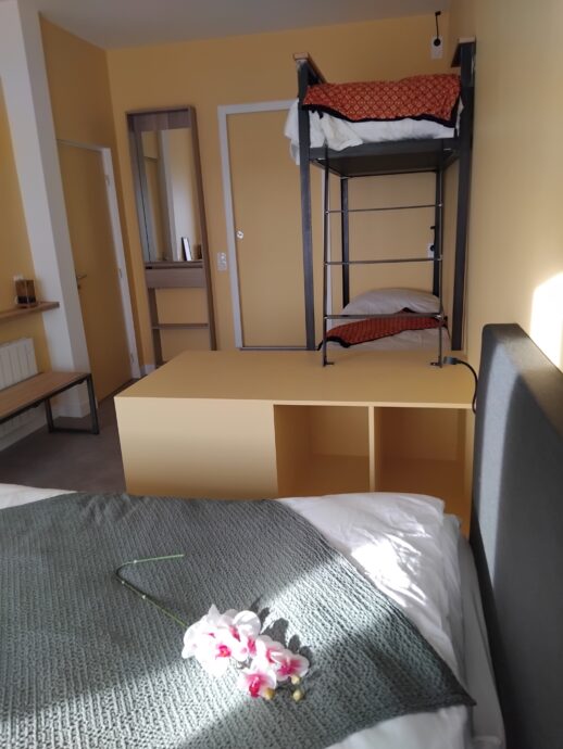 Chambre de 24m2 pour 4 personnes. Nous proposons un hébergement pour 4 personnes dans cette chambre.